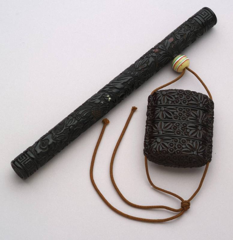 Carved cinnabar lacquer and wood box with cover