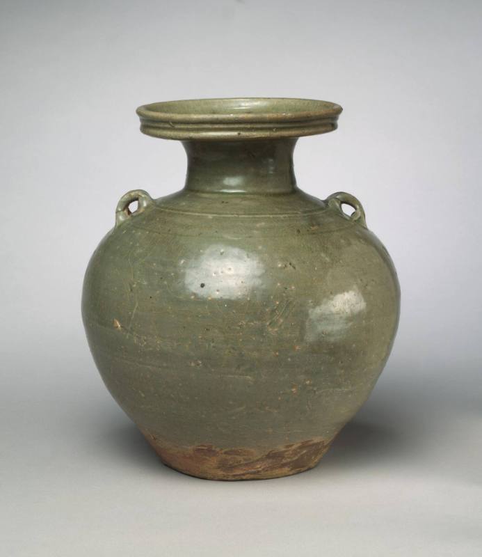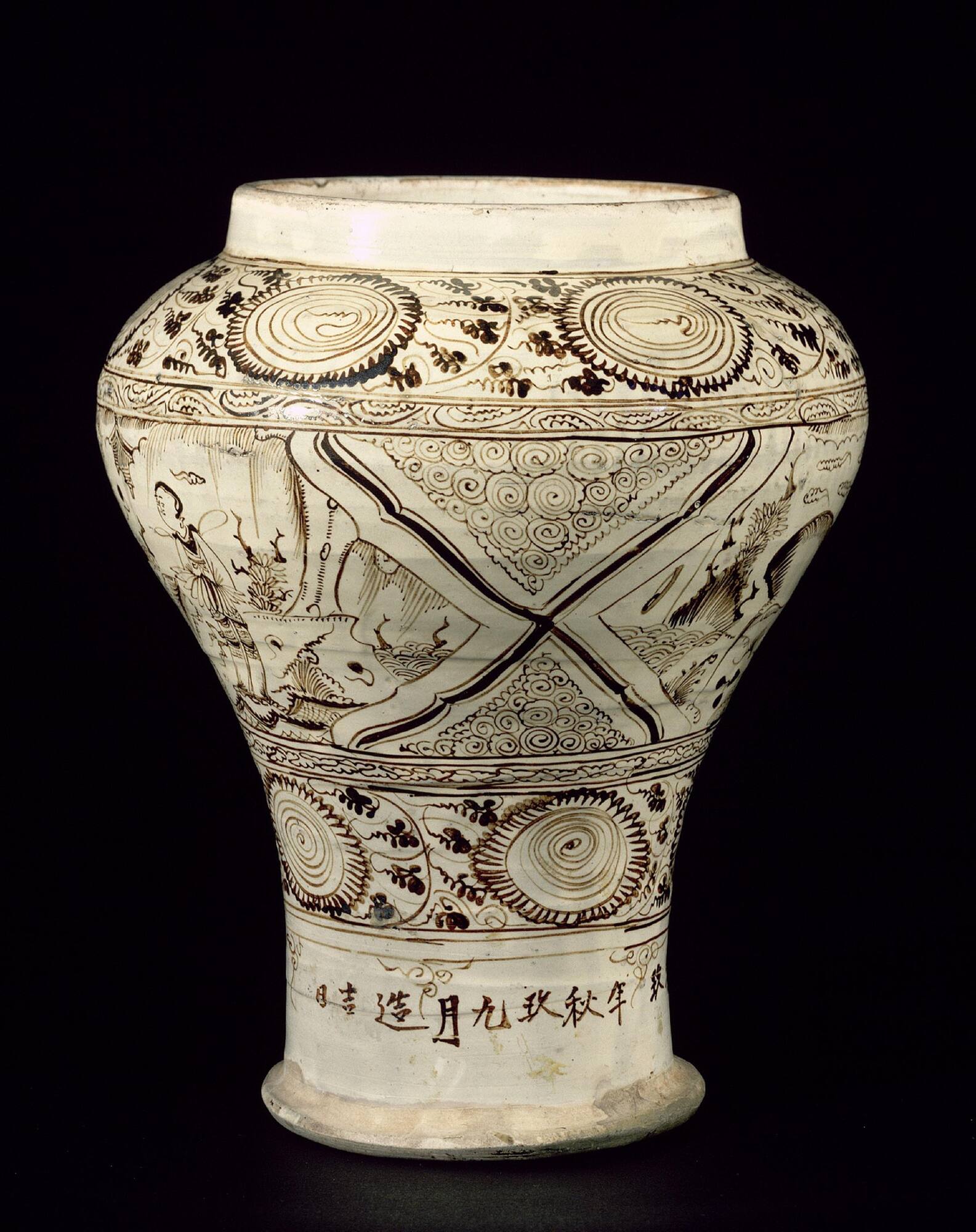 Porcellaneous clay, with creamy white glaze, painted in brown