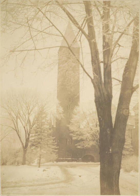 [The Library Tower, from the walk in front of Sage Chapel, Cornell University]