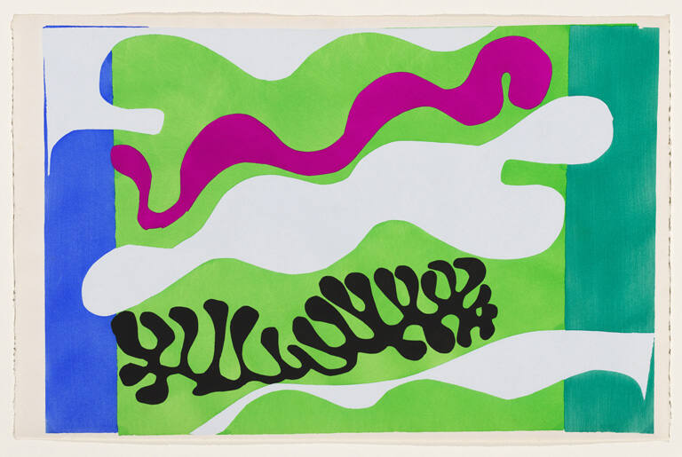 Matisse’s artistic career spanned more than six decades. He explored a diversity of styles and media, creating a unique pictorial language that consistently expressed his desire to “produce art of balance, purity, and serenity.” These pochoirs (a stencil technique) are from the Johnson’s complete Jazz portfolio. The book, comprised of twenty pochoirs, was published in 1947 when Matisse was largely confined to bed with intestinal cancer. The cutouts were made with the help of assistants who drew colorful shapes on white sheets of paper that Matisse then cut up and arranged into improvisational compositions. (“Highlights from the Collection: 45 Years at the Johnson,” curated by Stephanie Wiles and presented at the Johnson Museum January 27–July 22, 2018)