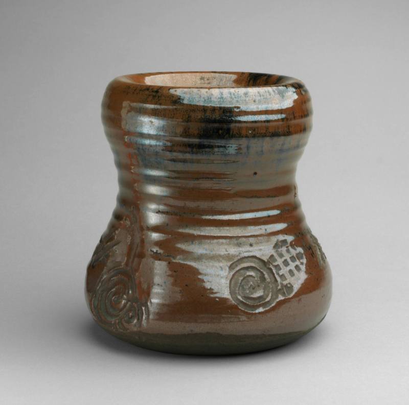 Transparent glazed high-fired stoneware decorated in underglaze iron-black