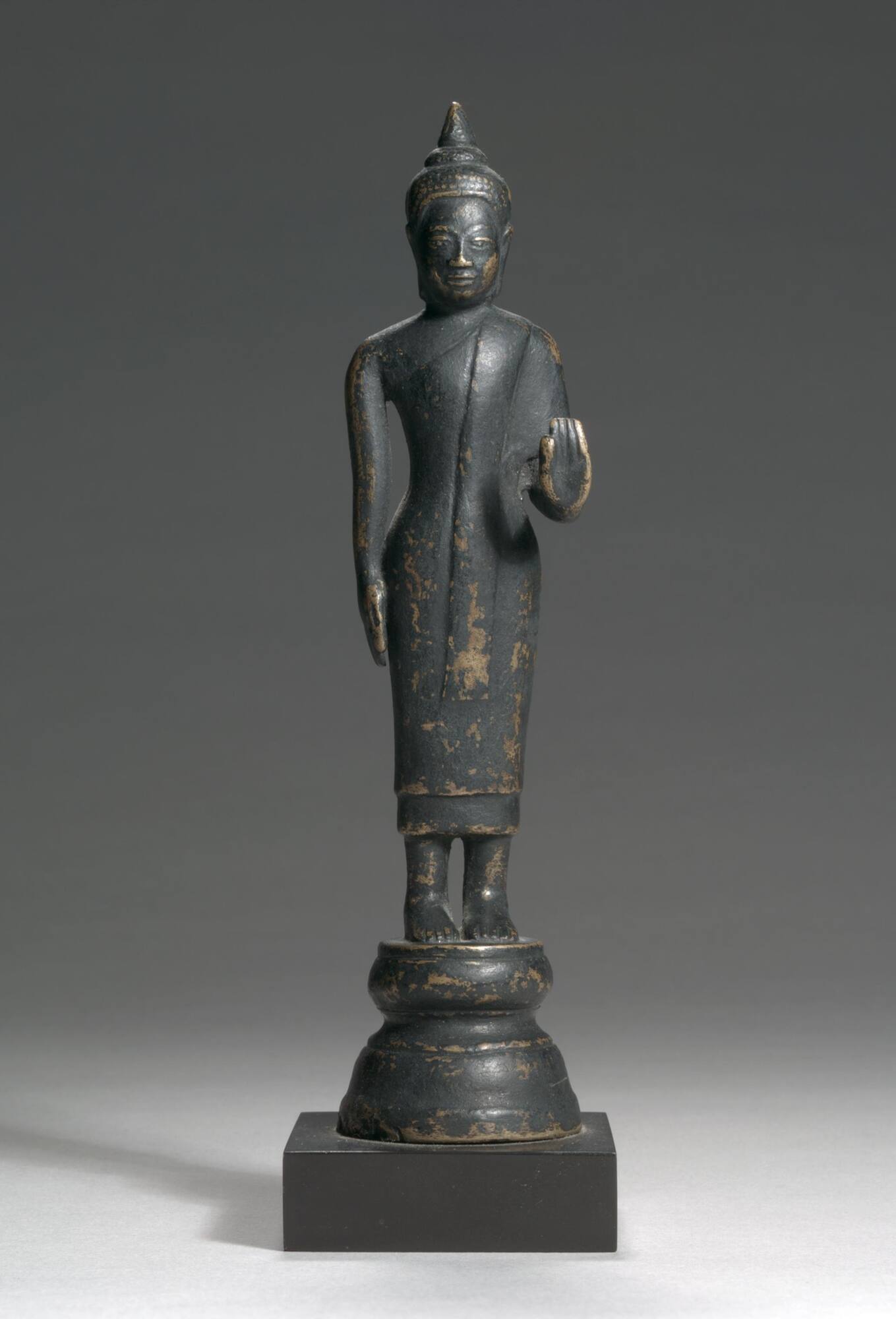 Standing figure of Buddha with left hand raised in abhaya mudra (gesture of blessing)