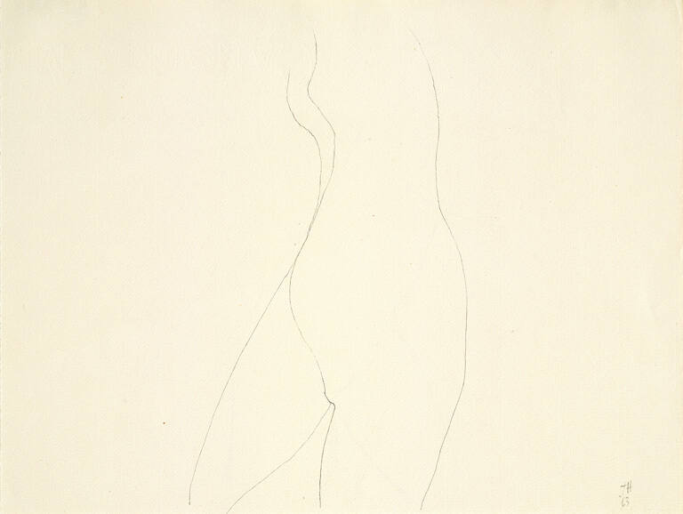 As scholarly academies for the training of painters and sculptors began to multiply in Europe from the late sixteenth century onward, this practice of drawing so-called “academies” from male models was codified as a third stage after students first learned to draw from engravings and then from plaster casts after ancient sculpture. Students drew first in red chalk on white paper, as here, laboriously covering the sheet with red. Next, they “graduated” to black and white chalk on darker paper as they gained mastery. The artist here draws everything he sees, including the form on which the model rests, complete with a cushion and staff for comfort during a long pose.
