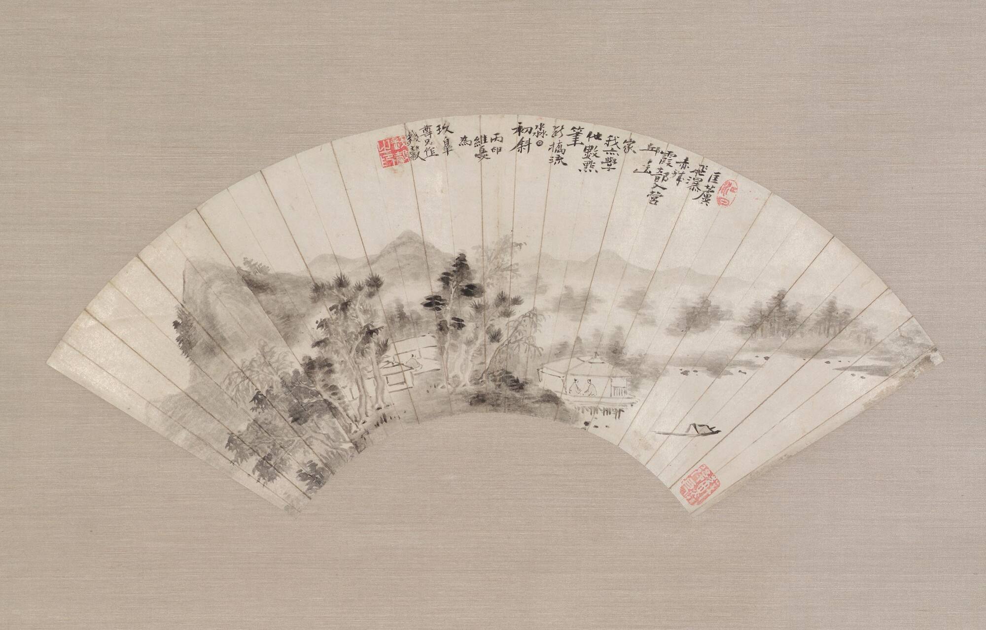 Fan-shaped album leaf: mounted as a hanging scroll; ink on paper
