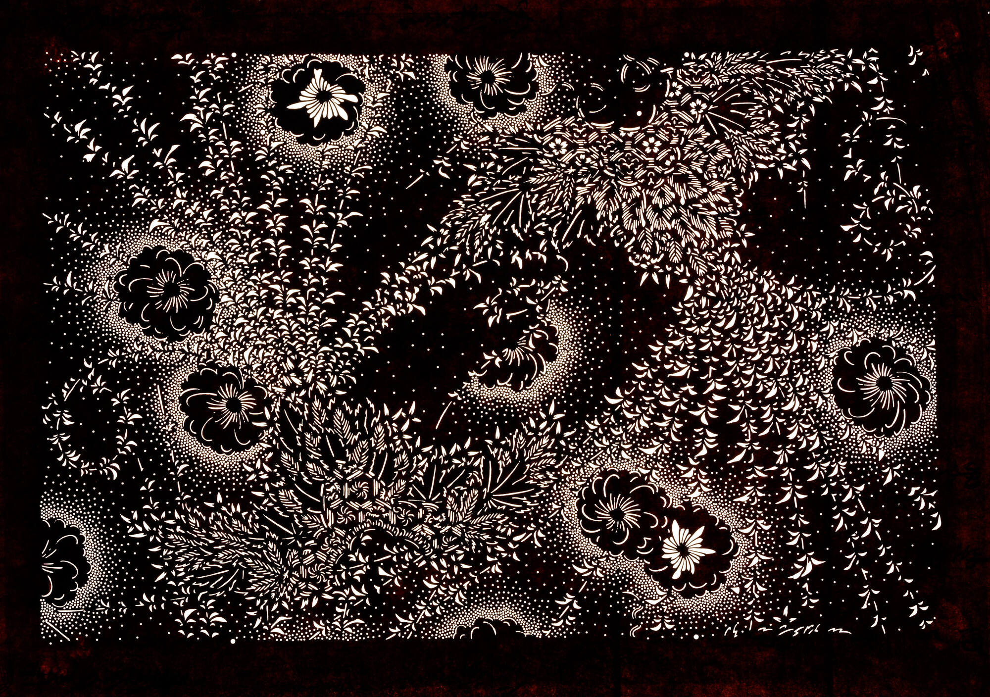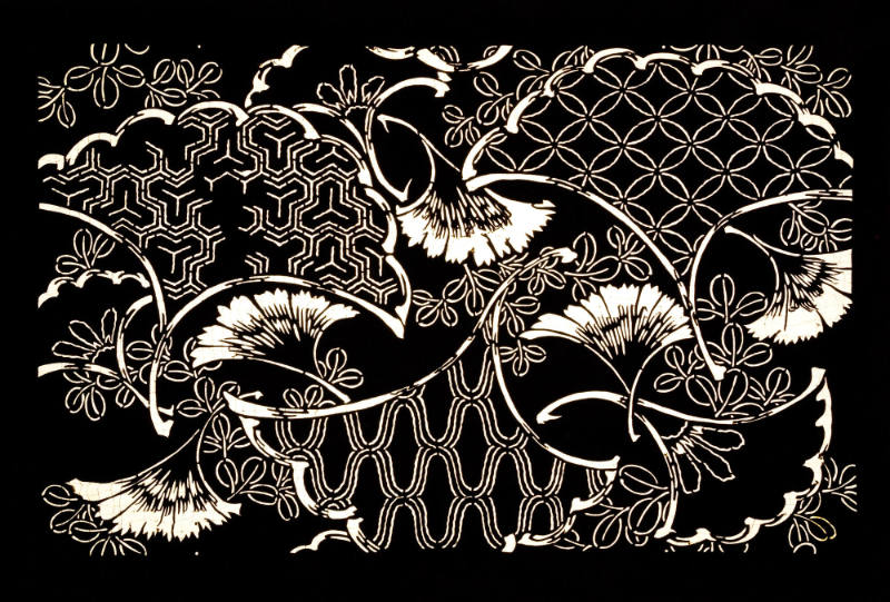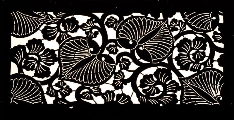 Mulberry bark coated with persimmon juice and cut out with knives, with silk thread reinforcements