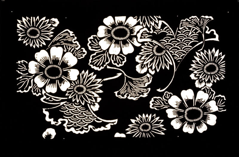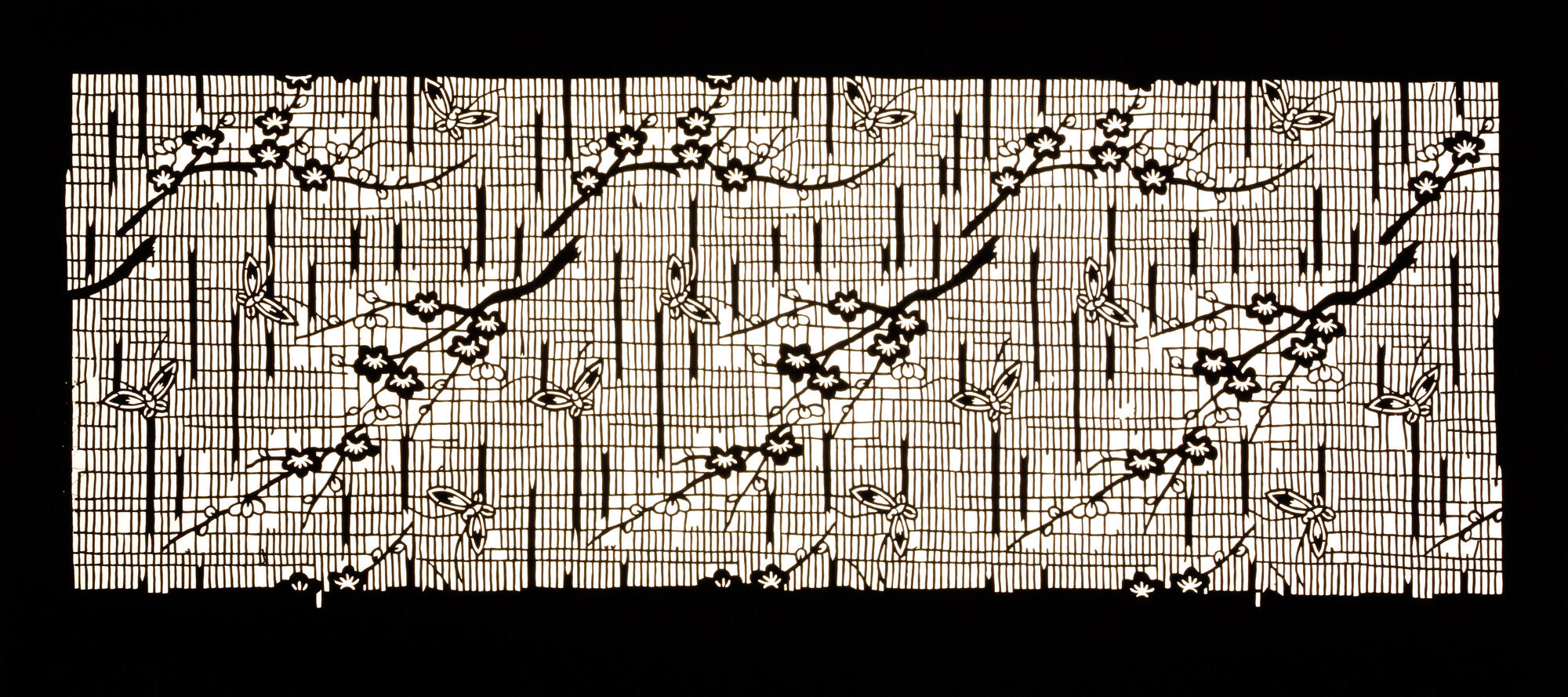 Katagami (textile stencil) with design of butterflies and plum branches in blossom
