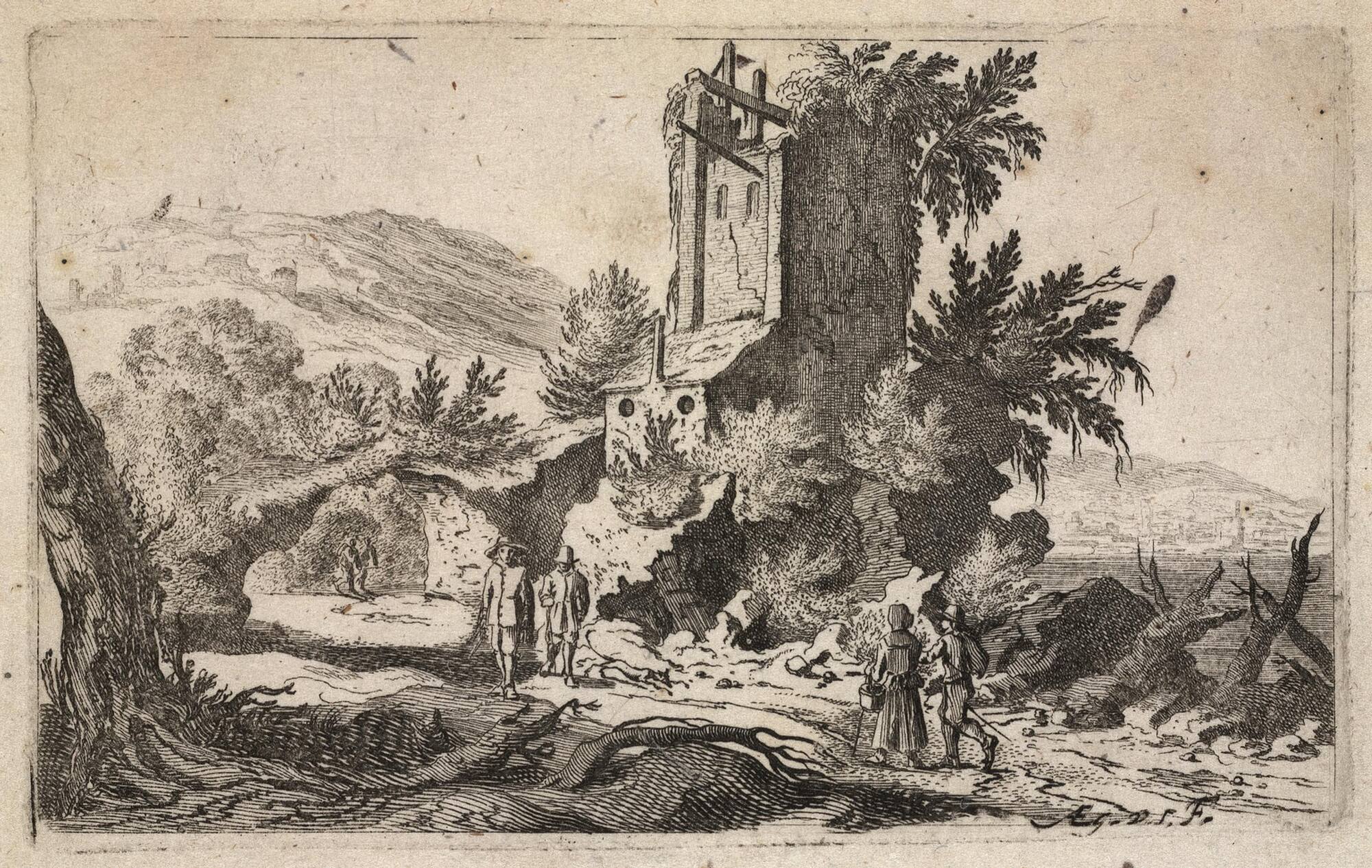Landscape with Pedestrians on a Path by Ruins and a Natural Arch