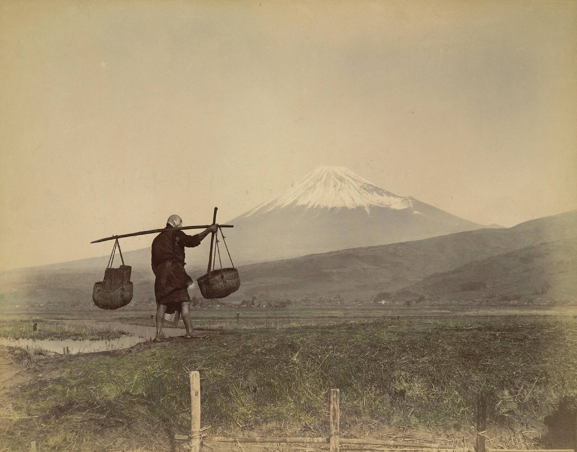 The Meiji Restoration of 1868 ended the Japanese Tokugawa (Edo) era. The new government aimed to make Japan a democratic state with equality among all its people. Photographers of the Meiji period (1868–1912) captured cultural traditions, recorded celebrated lives, and provided fascinating views into the emergent identities at a moment of unprecedented change in Japanese society. They photographed the serene and beautiful country landscapes, featuring subjects such as Mount Fuji and Lake Hakone, simple teahouses, and elaborate temples. Portraits were also produced of street musicians, tattooed farmers, and samurai warriors, not as specific individuals but stylized representations of social classes.Some albumen prints, photographed and tinted with watercolor by Western artists, are the very first examples of high-quality hand-colored photographs in Japan. For the Japanese, these prints were a perfect souvenir for Western travelers looking to collect cultural and artistic objects of Japan. (“15 Minutes: Exposing Dimensions of Fame,” curated by undergraduate members of Cornell’s History of Art Major’s Society and presented at the Johnson Museum April 16 – July 24, 2016)