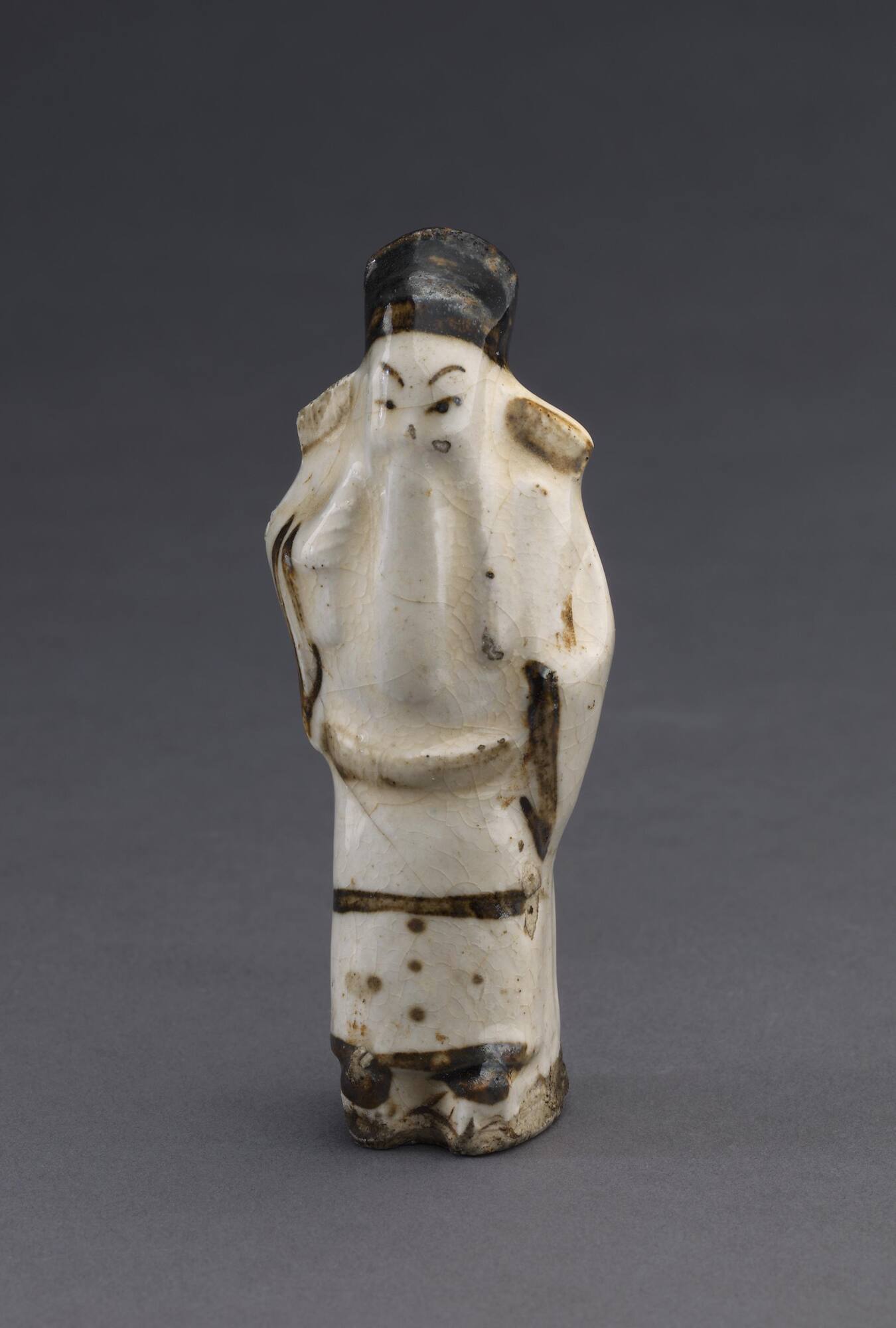 Porcelaneous clay with creamy white glaze and brown pigment