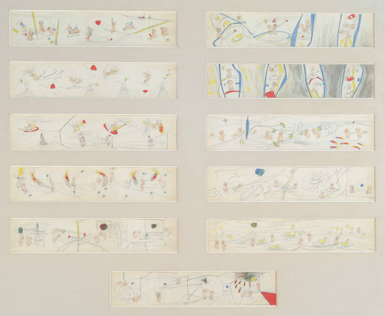 Eleven crayon and pencil drawings