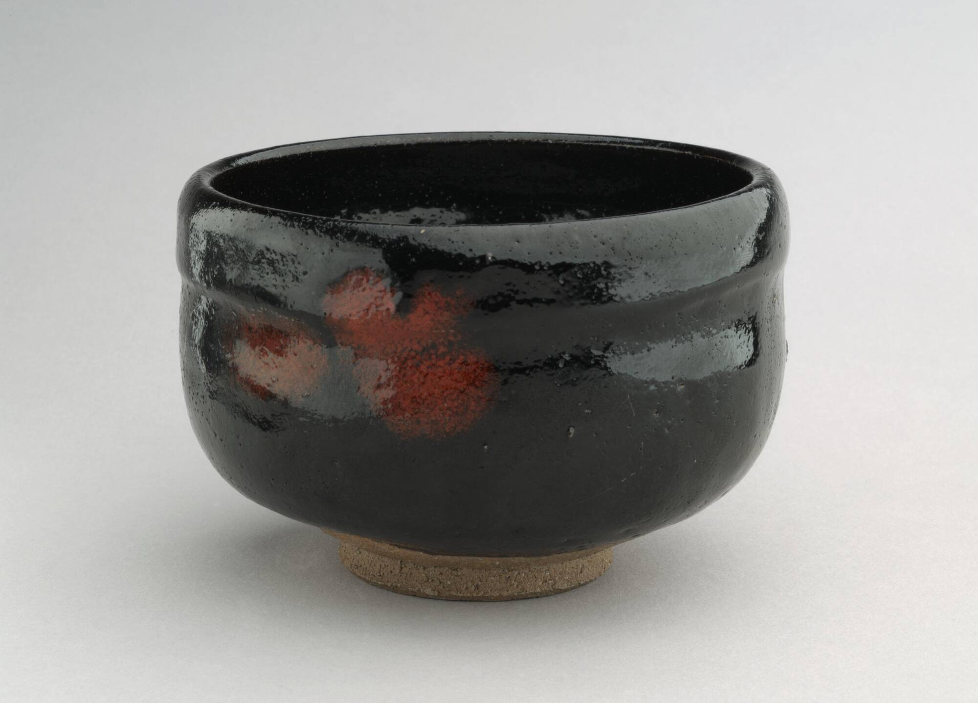 Raku tea bowls are hand built instead of thrown on a wheel and their uneven surfaces, revealing the potter’s touch, are an important feature of Japanese tea aesthetics.