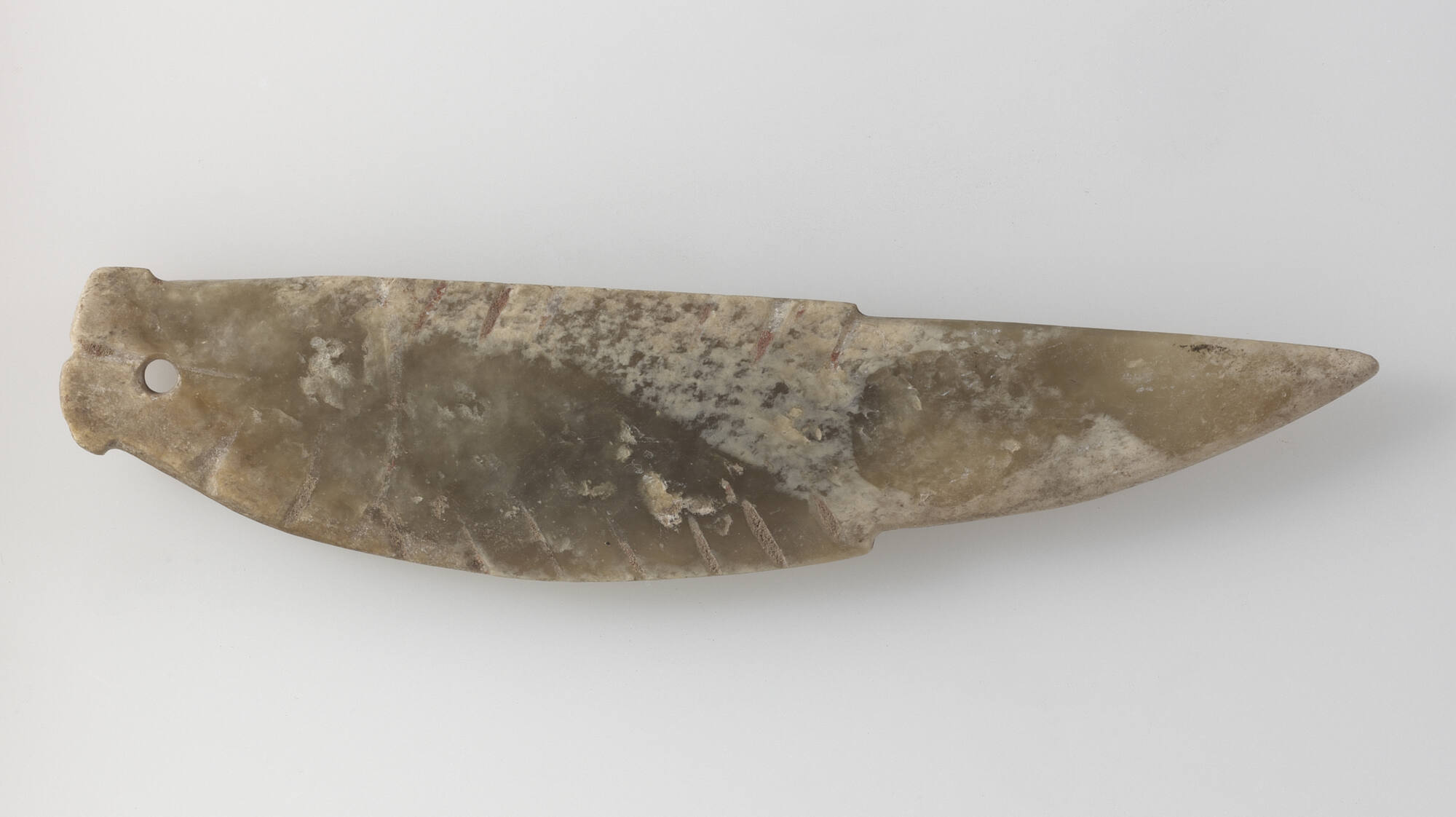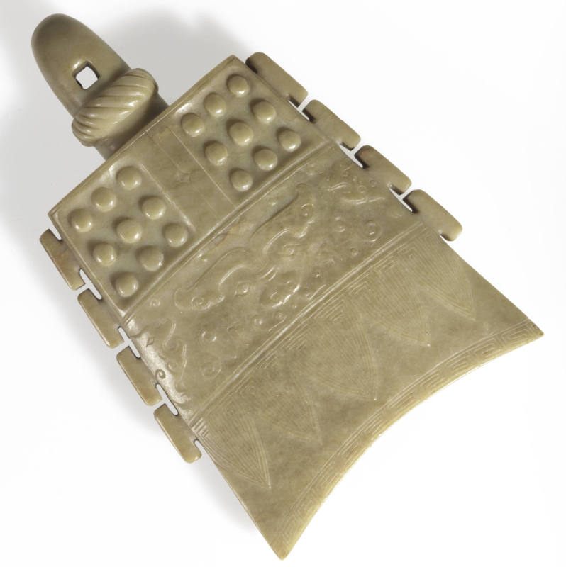 WHERE WAS IT MADE?Shang and Western Zhou dynasty jade pendants were made in central China, in the vicinity of Anyang and Zhengzhou, in Henan province.HOW WAS IT MADE?The hardness of jade makes it one of the most difficult stones to work, requiring even harder stones such as quartzite or diamonds to abrade it. That Neolithic cultures such as the Liangzhu were able to fashion such refined “carved” jade items is nothing short of amazing considering the primitive tools at their disposal. Hand saws or gut-string saws would have first been used to cut or slice the jade into a workable form, then simple awls and drills, perhaps made of bamboo, with points or disks likely made of quartzite, would have been employed to drill holes and to form intaglio and relief designs. Finally, the piece would be polished using abrasives.HOW WAS IT USED?Jade pendants and other ornaments were found in burials and seem to have been made specifically for adorning the corpse. Jade, venerated since the Neolithic period, has been continuously prized throughout China’s long history. Jade was thought to have magical properties and its luster, translucency and hardness were considered to embody virtues such as benevolence, integrity and courage.
