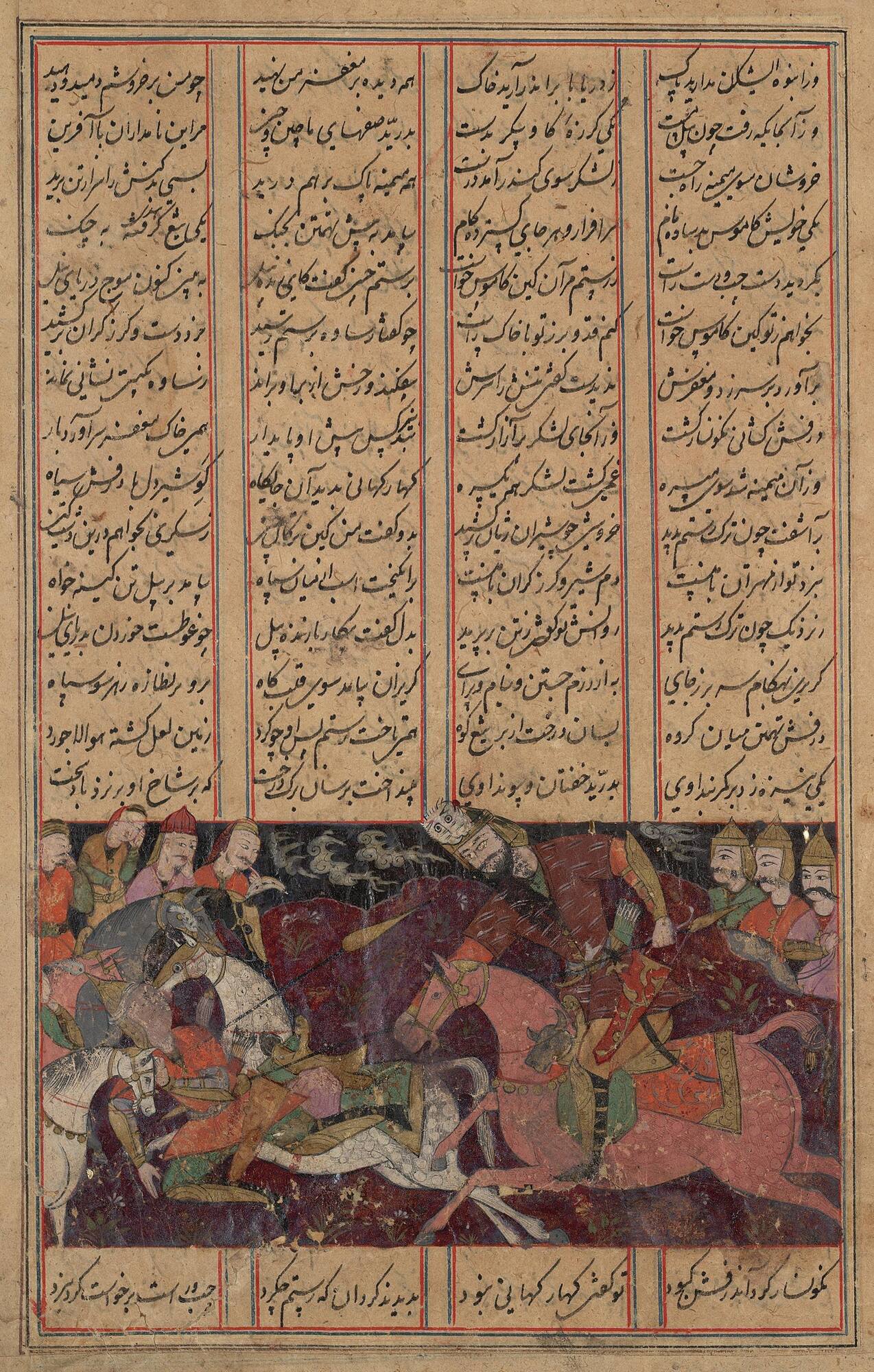 The battle between Rustam and the Khaqan of Chin; page from a Shahnama (Book of Kings)