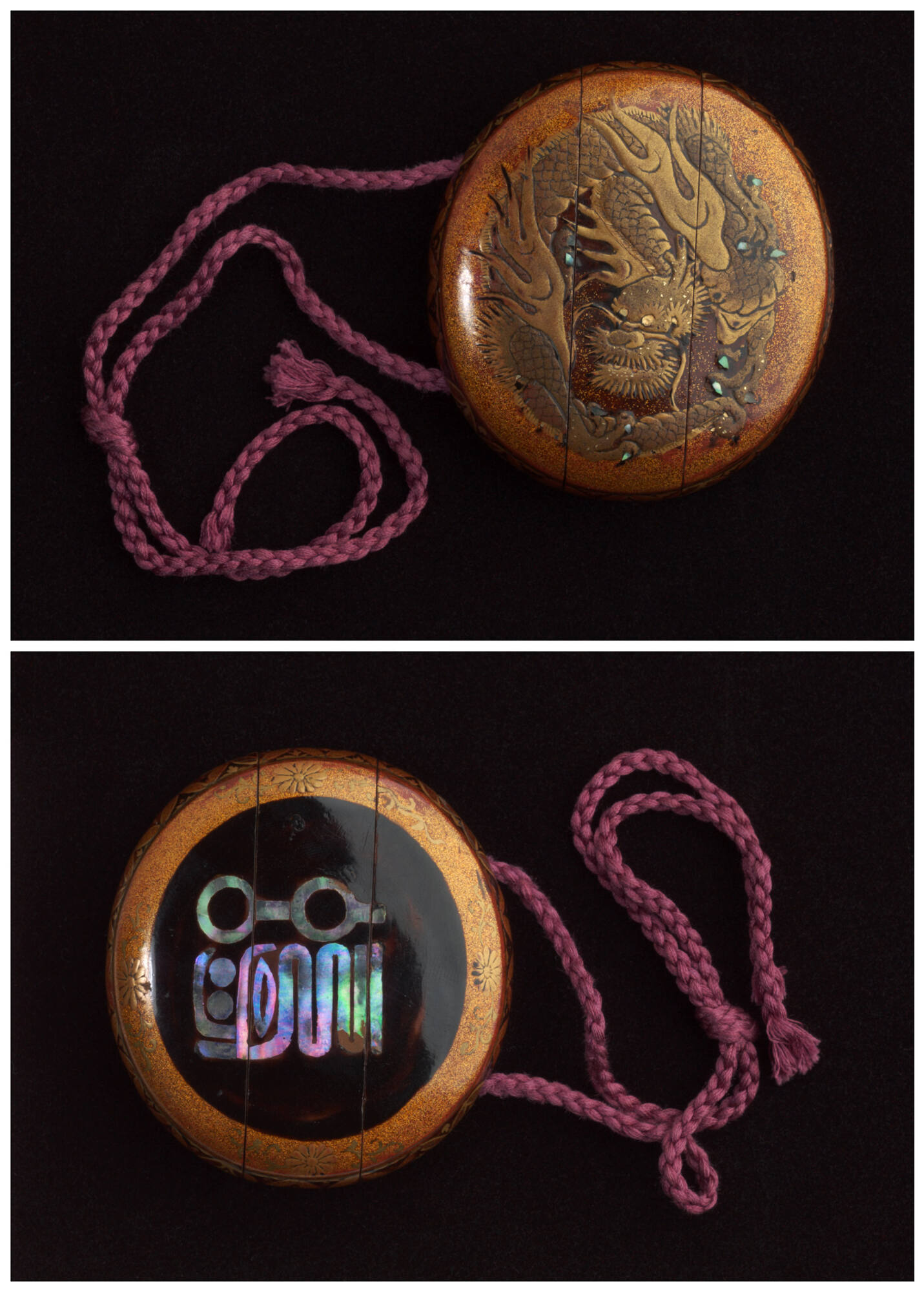 Gold and black lacquer with mother-of-pearl inlay