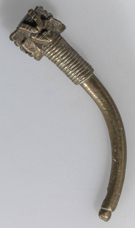 Goldweight in the form of a curved implement with coils and “V”-shaped forms at top