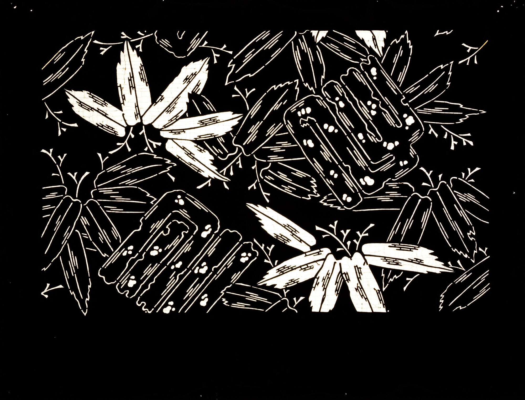 Mulberry bark stencil, human hair
