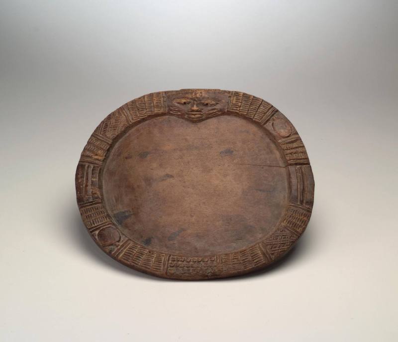 Wood, cloth, feathers, pigment, and encrustation