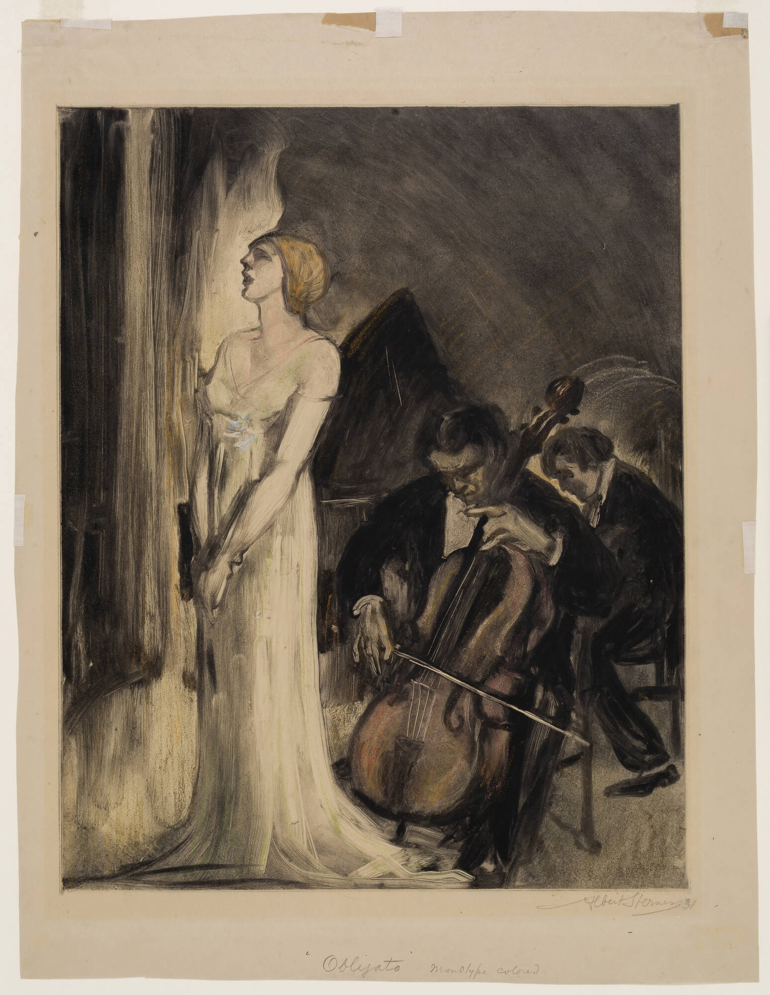 Monotype touched with pastel and gold on wove paper