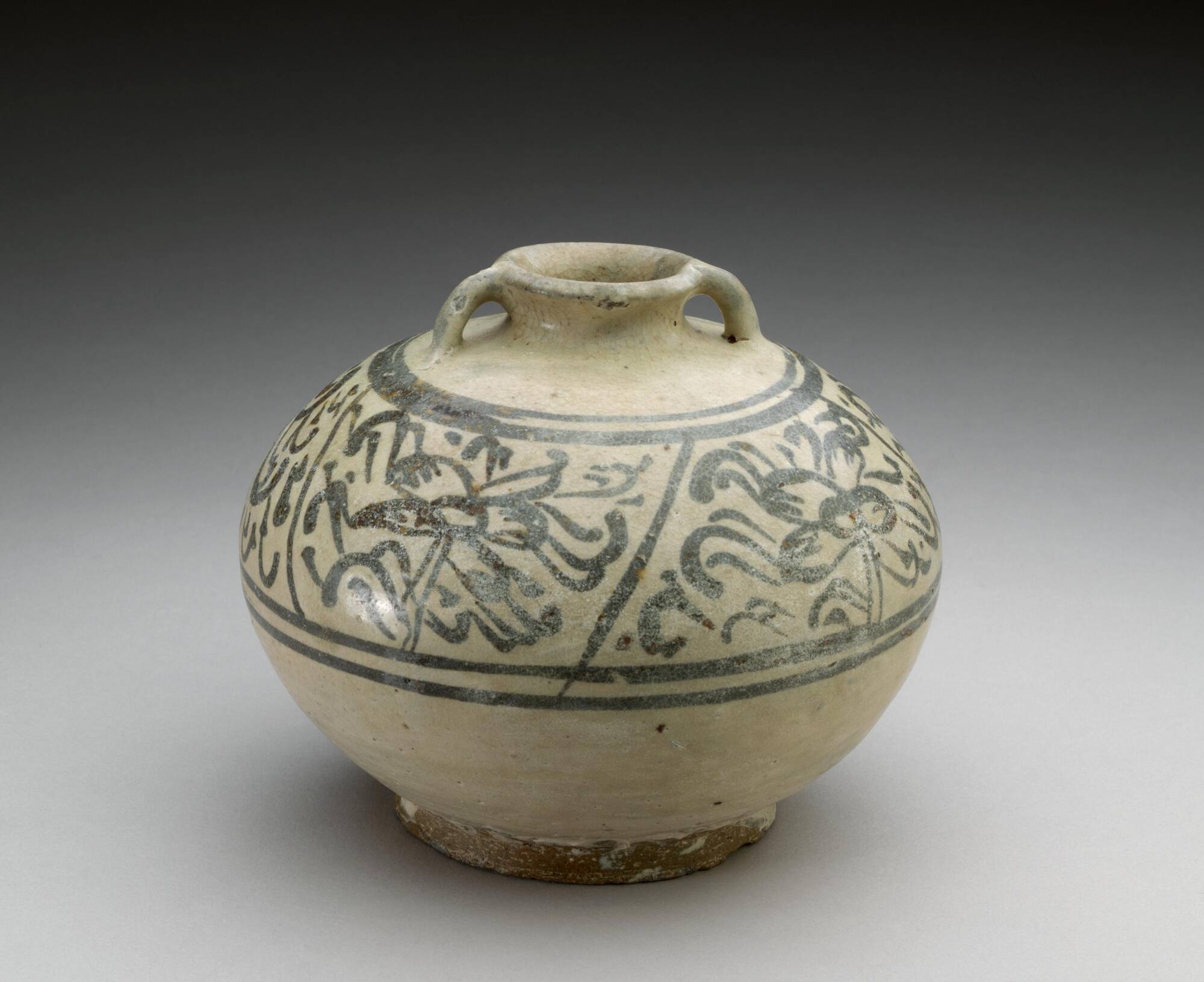Stoneware decorated in underglaze iron-black and covered in transparent glaze