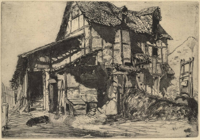 Etching, drypoint, and plate tone with ivory chine collé