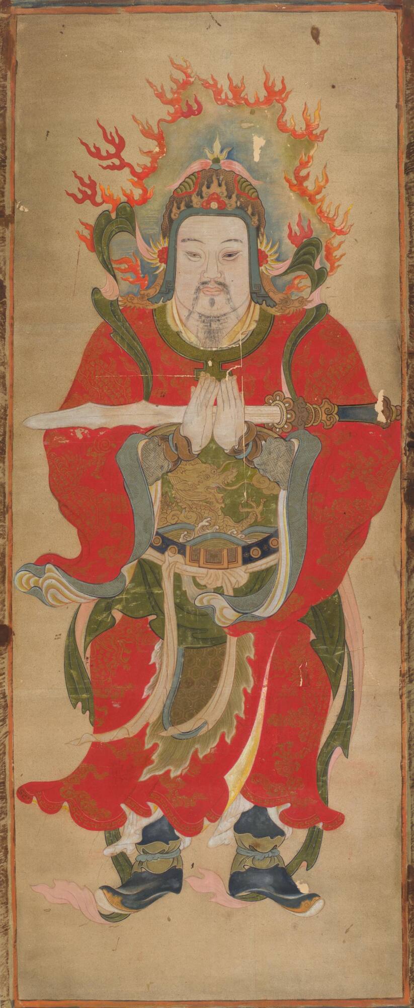 Hanging scroll: Ink and color on mulberry bark affixed to cardboard on paper