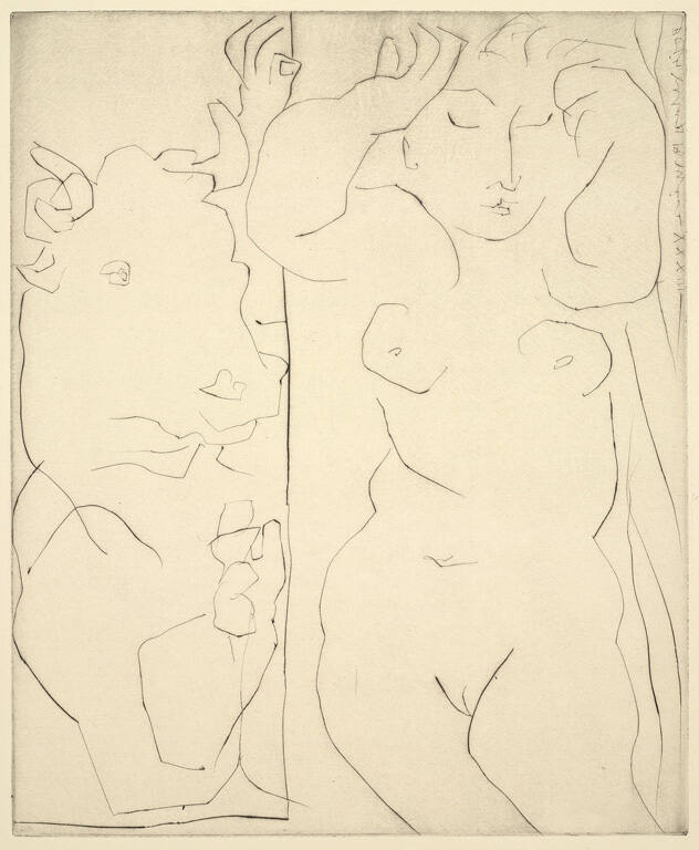 Minotaur Contemplating a Sleeping Woman (Minotaure contemplant amoureusement une dormeuse)