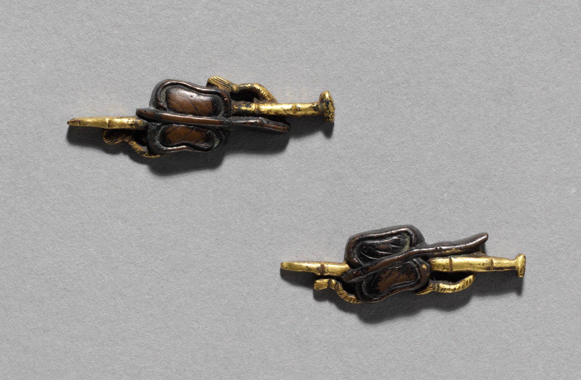 Cast brass with gold inlay