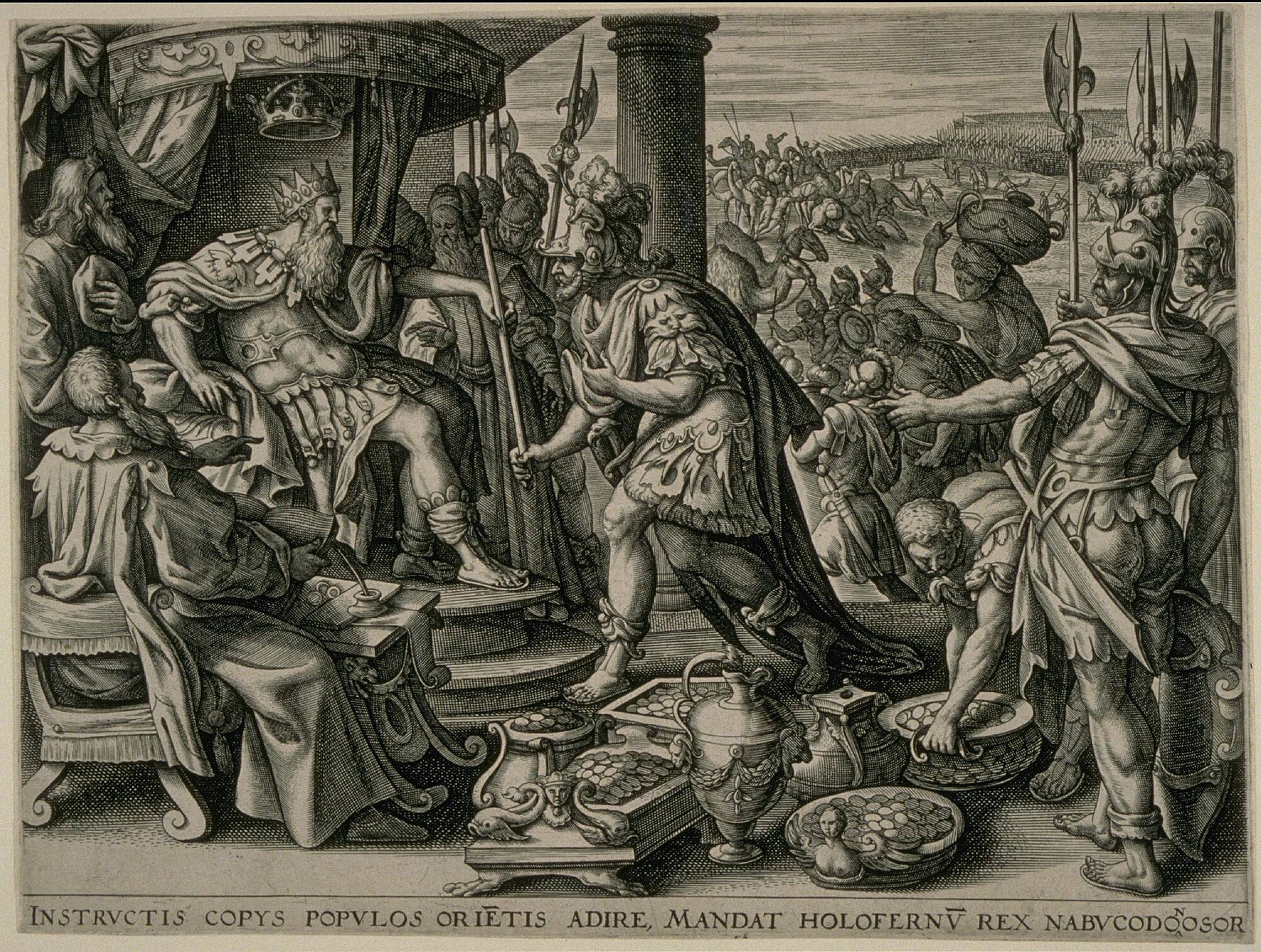 Holofernes Before Nebuchadnezzar, plate 1 from the Story of Judith and Holofernes