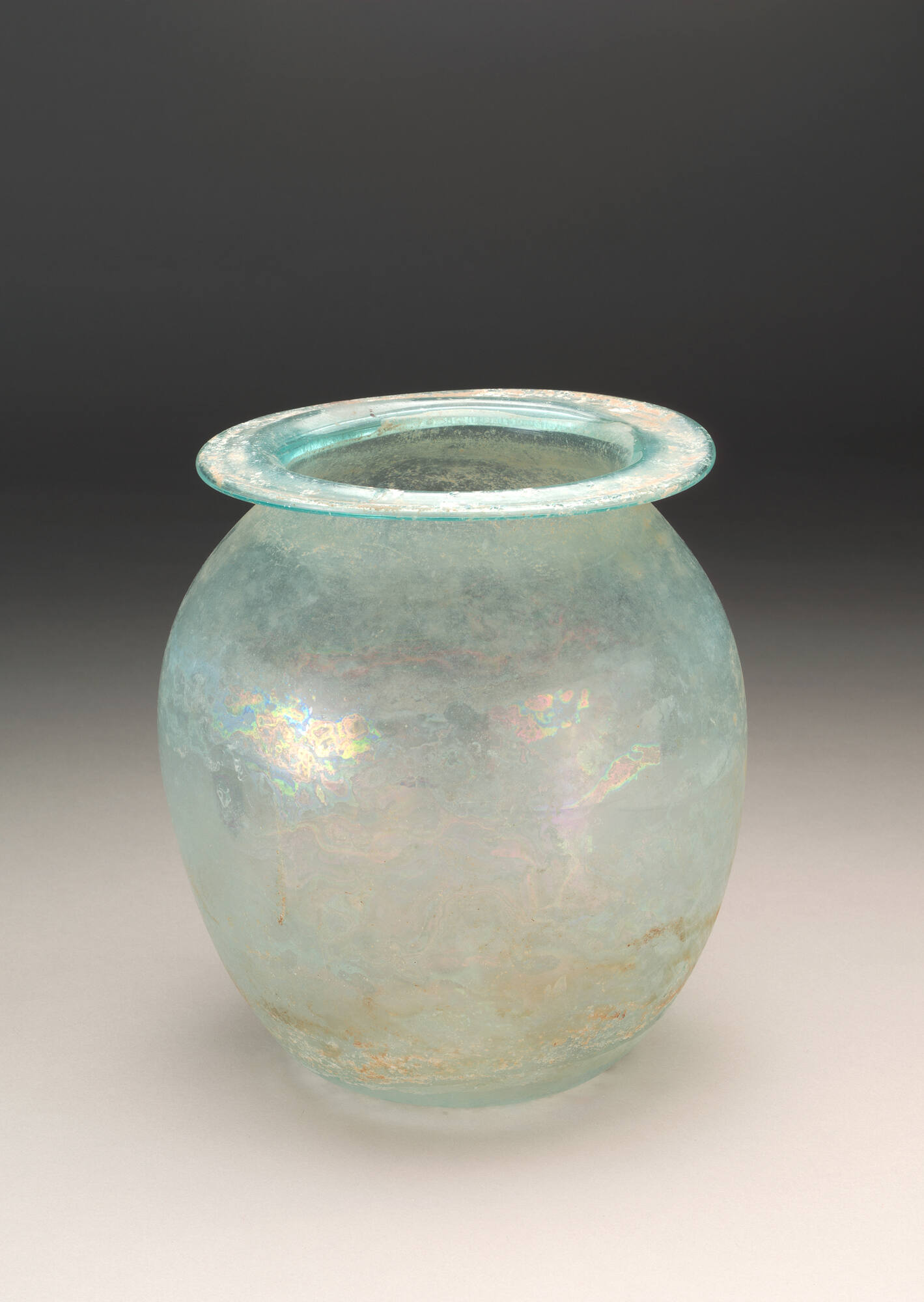 Spherical vessel with compressed neck and flared, flat lip
