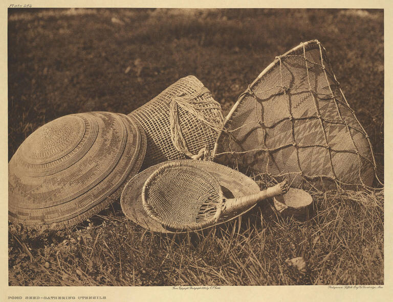 Pomo seed-gathering utensils, from The North American Indian