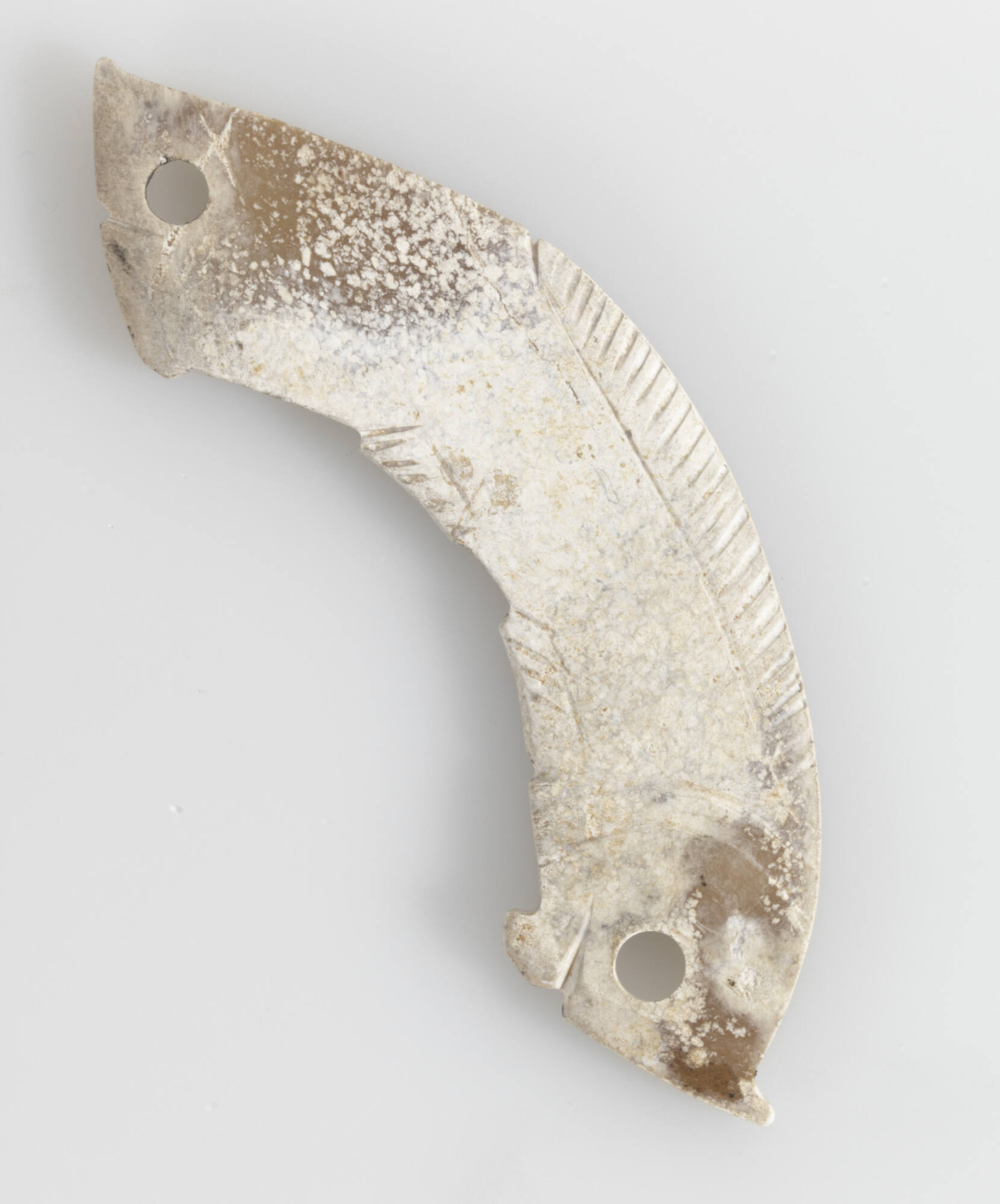 WHERE WAS IT MADE?Shang and Western Zhou dynasty jade pendants were made in central China, in the vicinity of Anyang and Zhengzhou, in Henan province.HOW WAS IT MADE?The hardness of jade makes it one of the most difficult stones to work, requiring even harder stones such as quartzite or diamonds to abrade it. That Neolithic cultures such as the Liangzhu were able to fashion such refined “carved” jade items is nothing short of amazing considering the primitive tools at their disposal. Hand saws or gut-string saws would have first been used to cut or slice the jade into a workable form, then simple awls and drills, perhaps made of bamboo, with points or disks likely made of quartzite, would have been employed to drill holes and to form intaglio and relief designs. Finally, the piece would be polished using abrasives.HOW WAS IT USED?Jade pendants and other ornaments were found in burials and seem to have been made specifically for adorning the corpse. Jade, venerated since the Neolithic period, has been continuously prized throughout China’s long history. Jade was thought to have magical properties and its luster, translucency and hardness were considered to embody virtues such as benevolence, integrity and courage.
