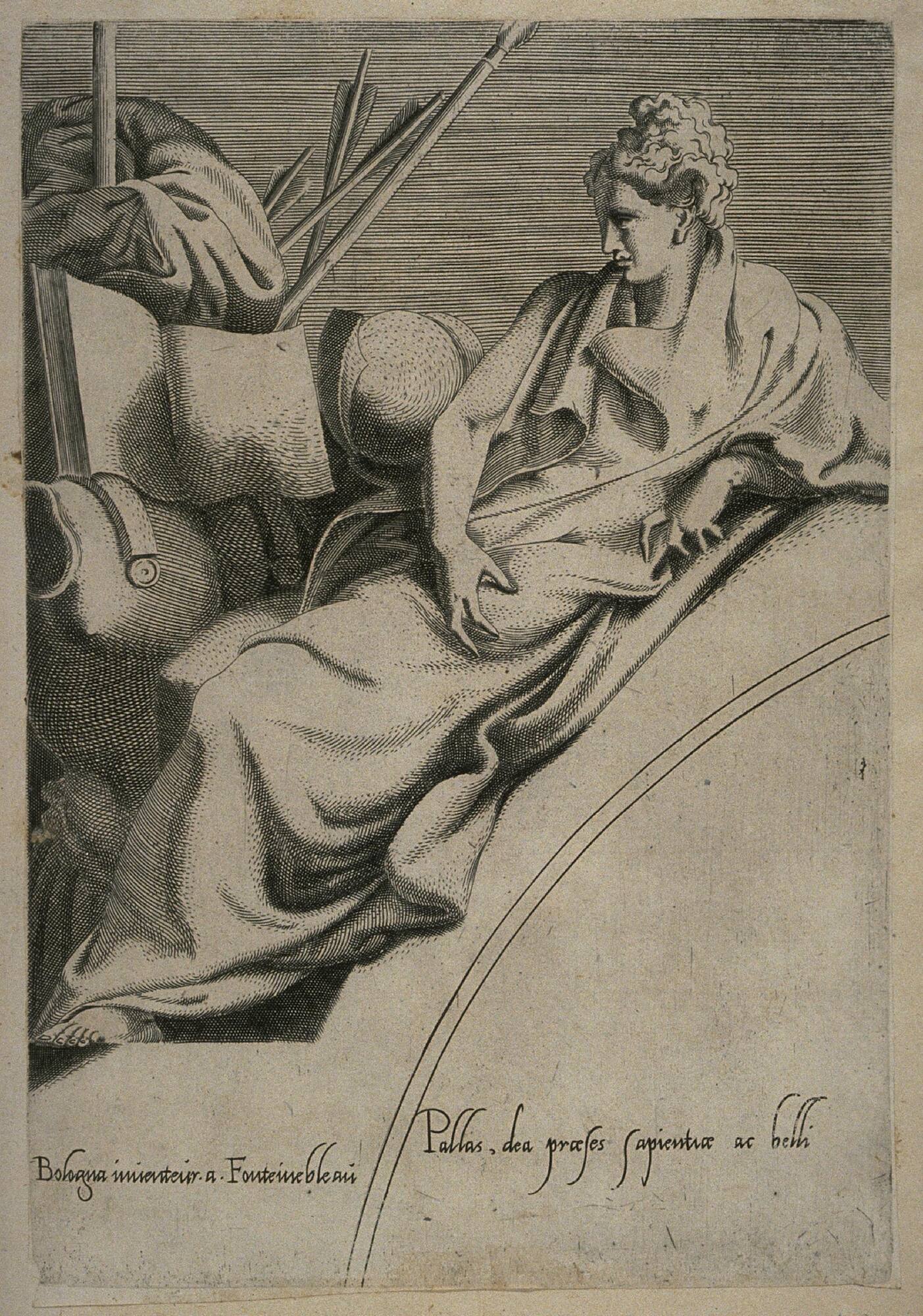 Part of a series of twelve prints depicting the nine muses and the three major female Olympian goddesses, these designs were probably intended for the decoration of the royal bath chambers; it is likely that this series of pictures of reclining women, some quite scantily clad, were considered appropriate for the sensuous atmosphere of the baths.The royal bath chambers also housed François’s great collection of art by all the great Italian masters-Leonardo, Raphael, Michelangelo, Titian-including the Mona Lisa herself. It was only in the early seventeenth century, when many great works had already deteriorated beyond recognition, that François’s collection was moved to more suitable housing in the Louvre, where it formed the core of one of the greatest museum collections in the world.