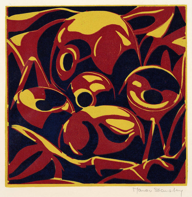 Color linocut on laid paper