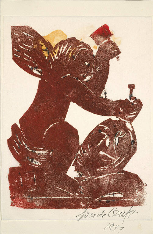 Color linocut on Japanese tissue mounted on wove paper