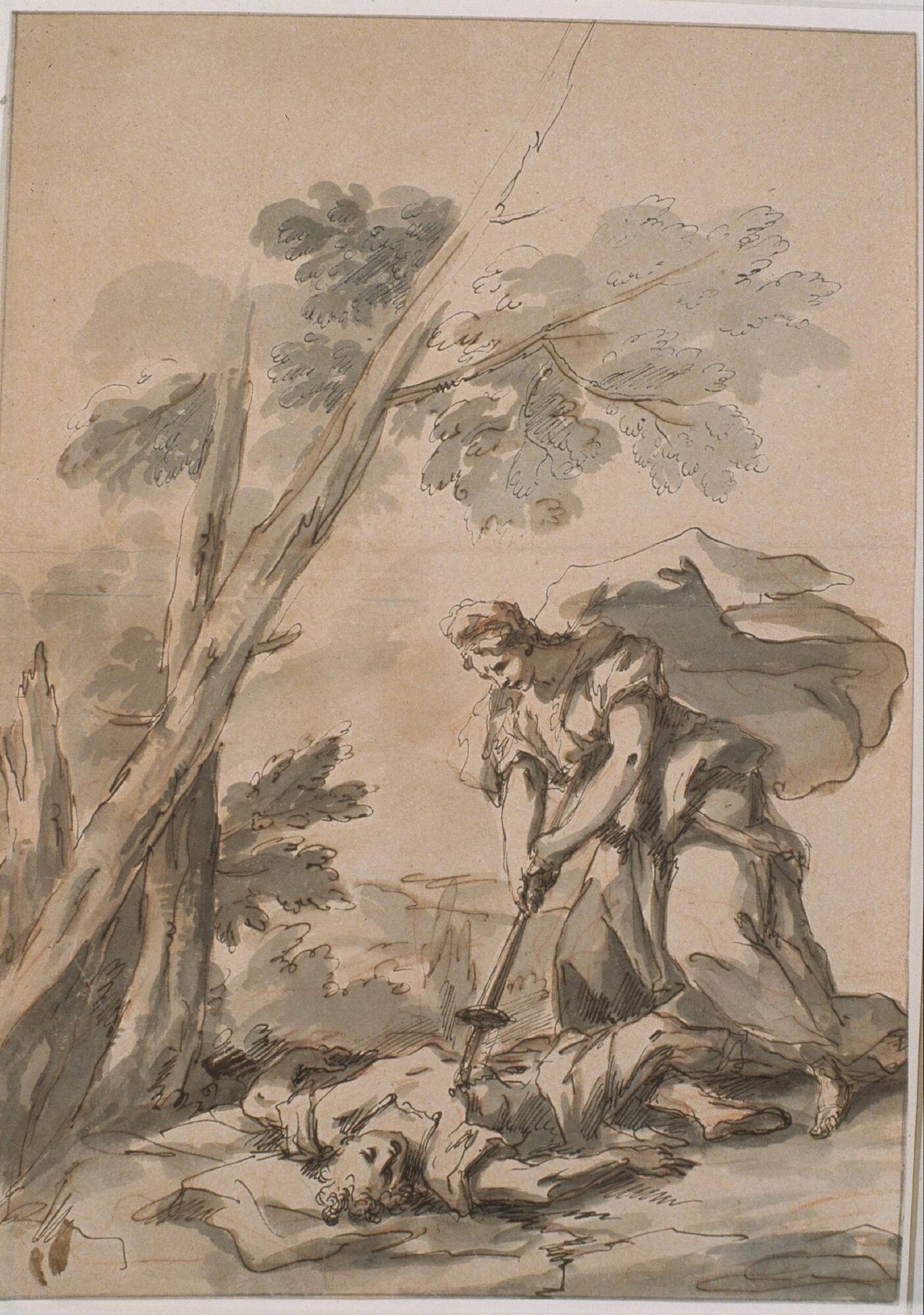 Black ink and wash over indications in red chalk on laid paper