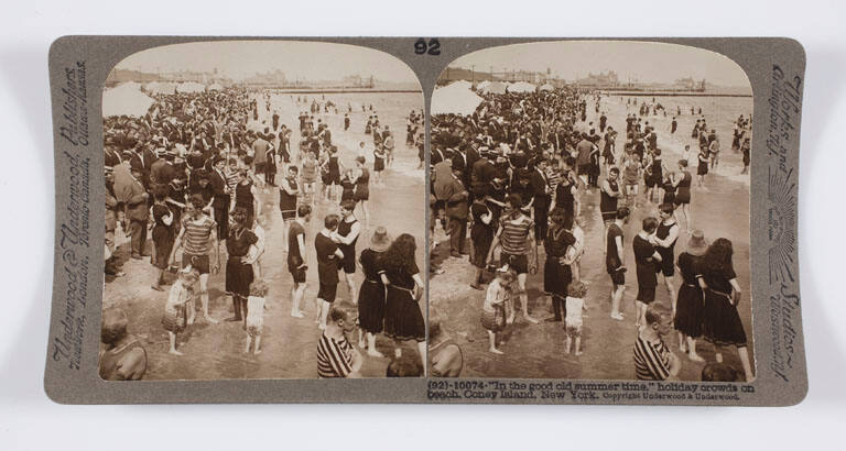 “In the good old summer time,” holiday crowds on beach, Coney Island, New York