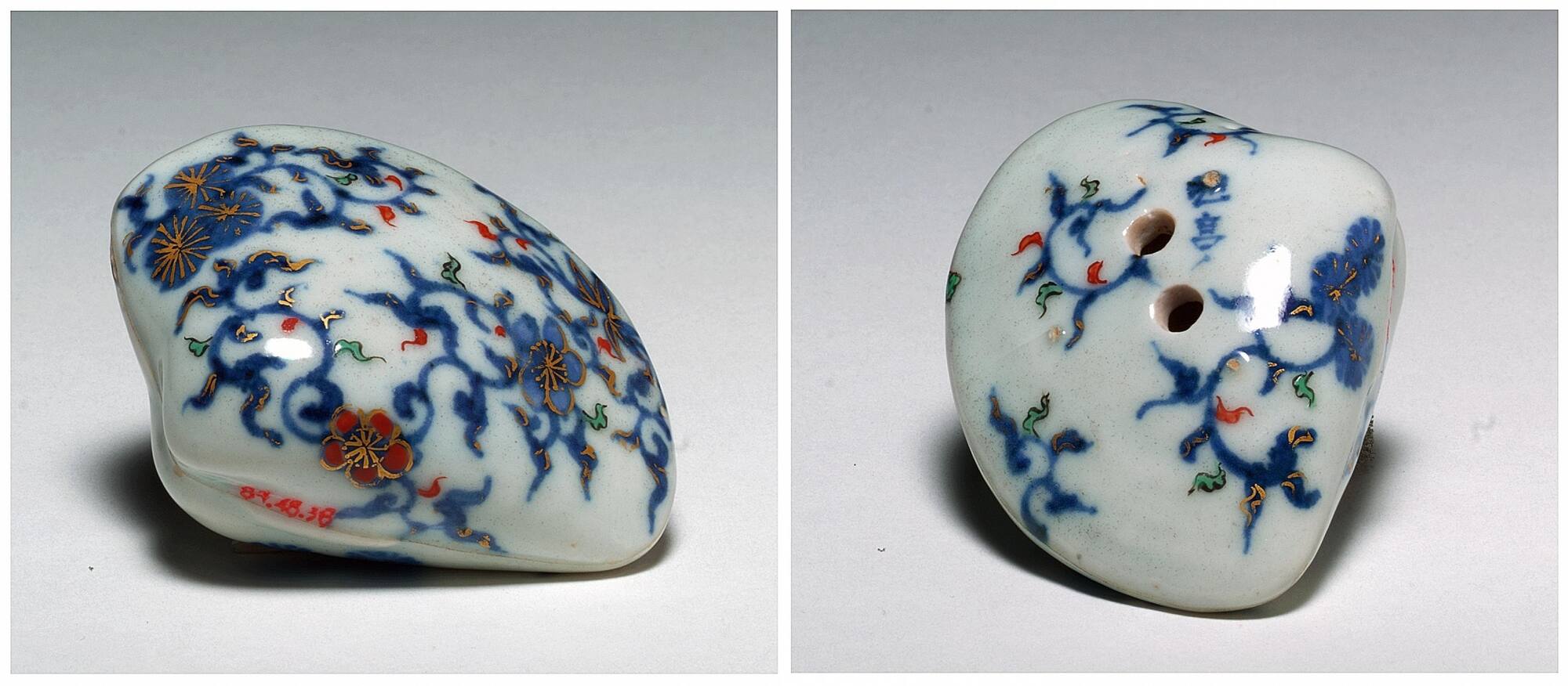 Porcelain; Cobalt underglaze; Gold, red, green, black enamels