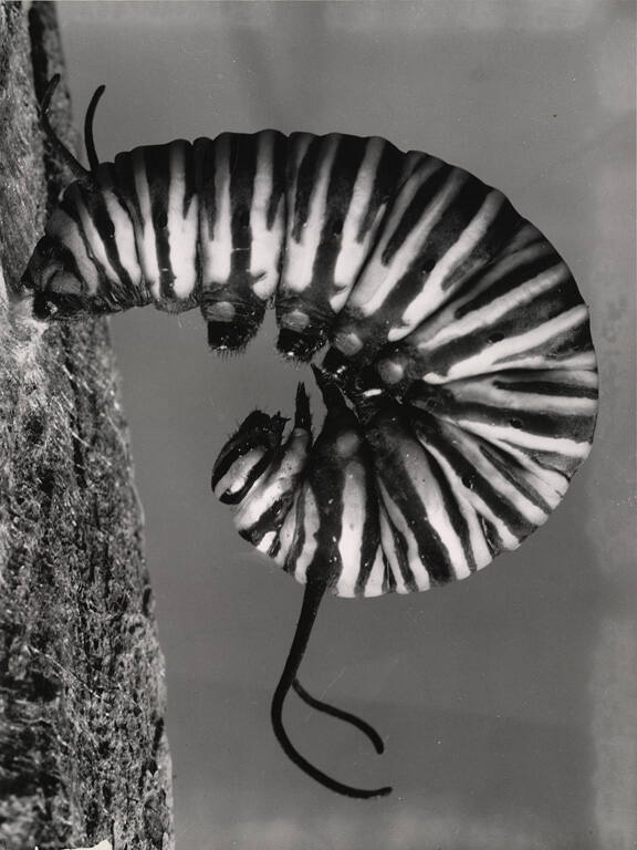 Accompanied by Fortune’s managing editor Parker Lloyd-Smith, Bourke-White visited the Swift & Company meatpacking plant in Chicago in 1929. On their final day, they reached a building where the final remains of slaughtered pigs were ground into livestock feed. Despite the unbearable stench, Bourke-White set up her camera and had a workman pose to provide a sense of scale. When she finished, she left her camera cloth and other small equipment behind to be burned since they had absorbed the nauseating smell. Like Ore loading docks, this photograph was taken in conjunction with a story published in the first issue of Fortune magazine. (“Margaret Bourke-White: From Cornell Student to Visionary Photojournalist,” curated by Stephanie Wiles and presented at the Johnson Museum January 24 – June 7, 2015)