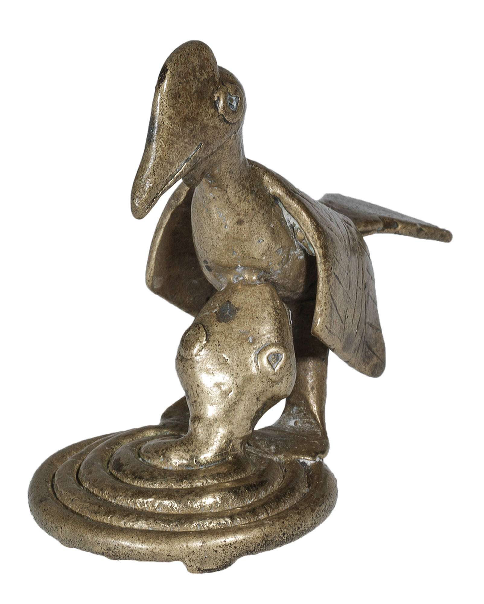 Goldweight in the form of a coiled snake attacking a bird