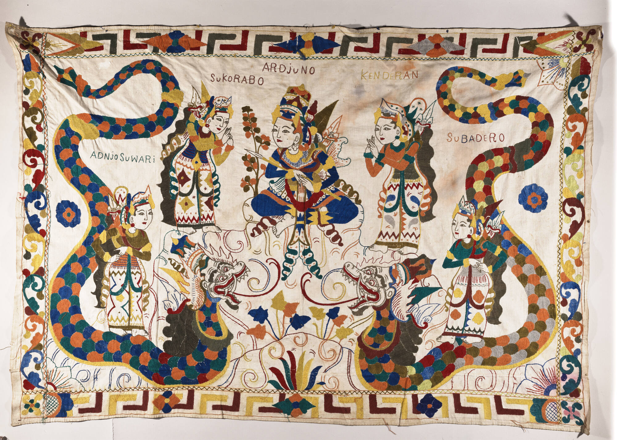 Rectangular hanging (tabing) showing Arjuna Wiwaha (Arjuna’s Meditation), from the Mahabharata