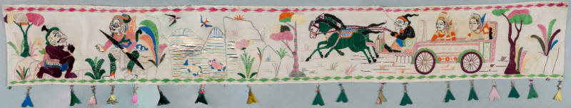 Rectangular hanging (tabing) showing Arjuna and Wisnu arguing, a scene from the Mahabharata