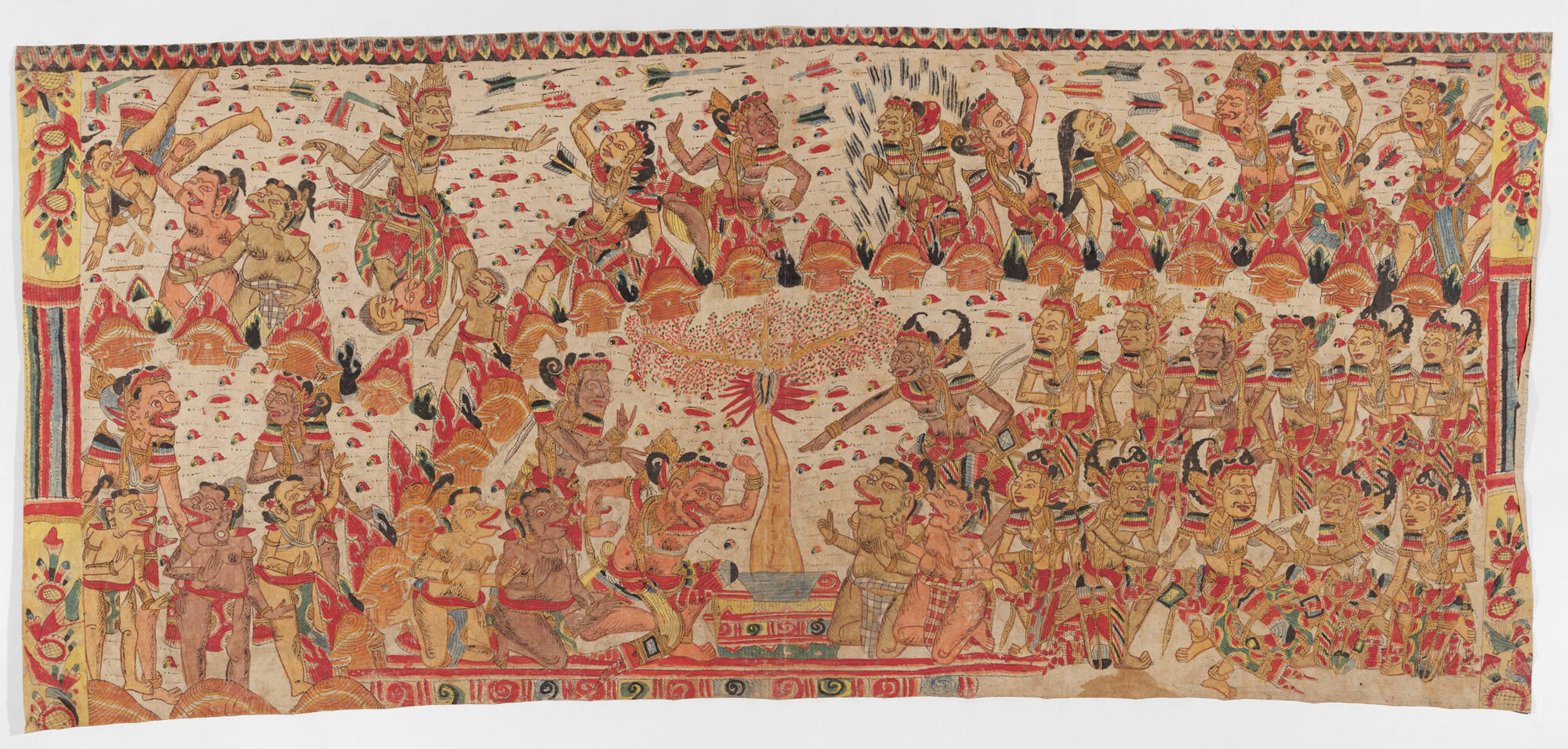 Curtain (langse) with a scene of the Baratayuda (Great Battle) and the death of Abimanyu, from the Mahabharata