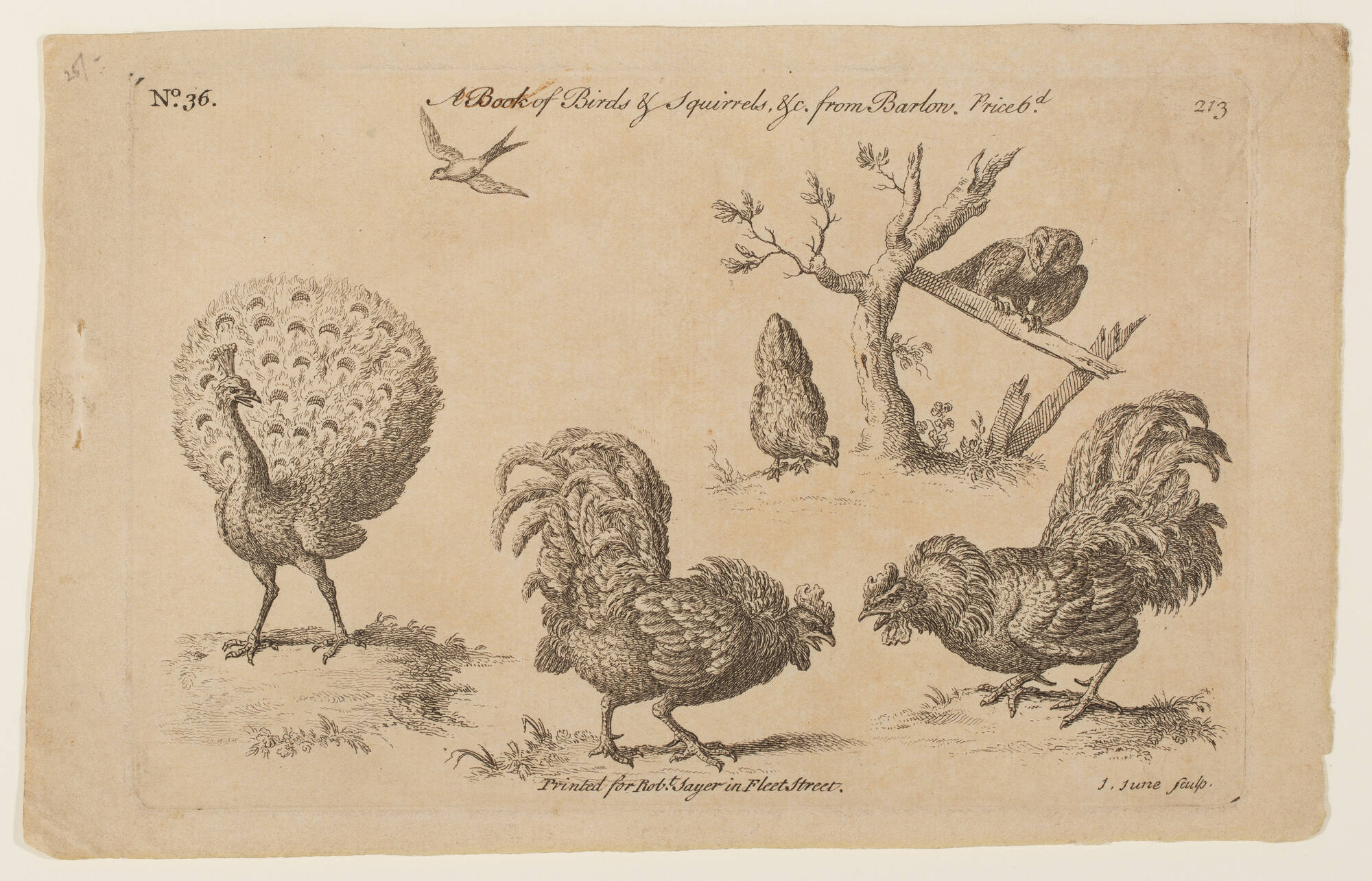 Plate 36 (chickens, peacock, owl) from: Animals of Various Species