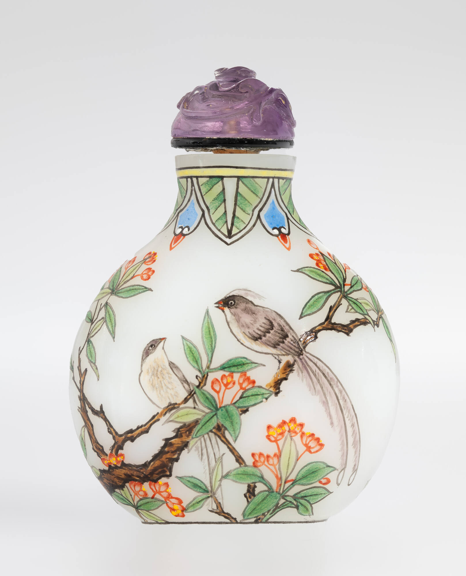 Glass with enamels, amethyst