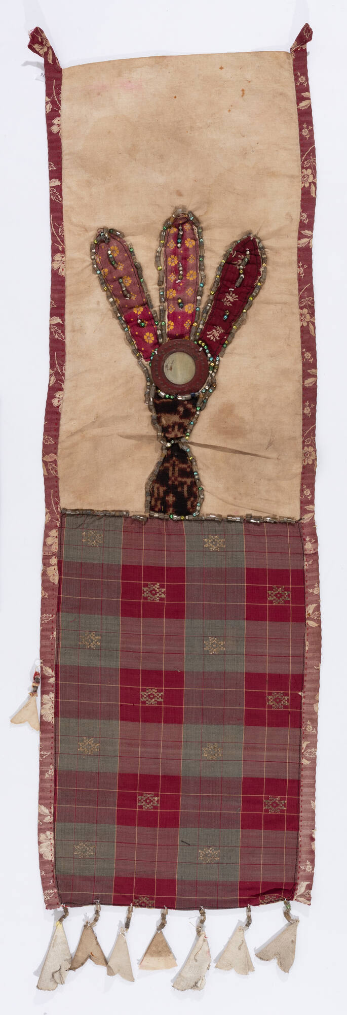 Cotton appliqué with beads on cotton songket