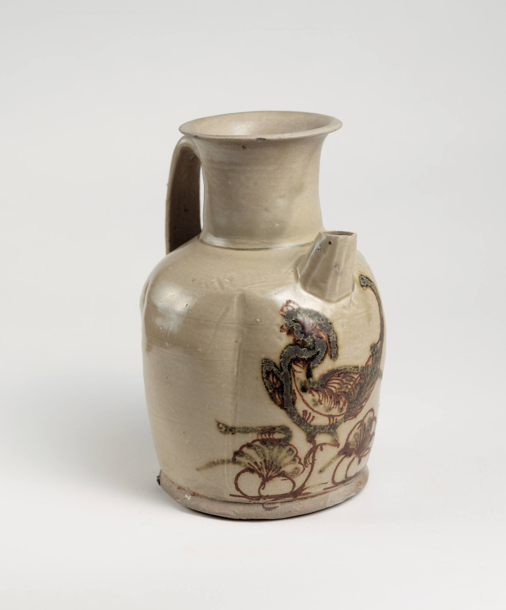 Ewer with design of bird and lotus, Changsha ware