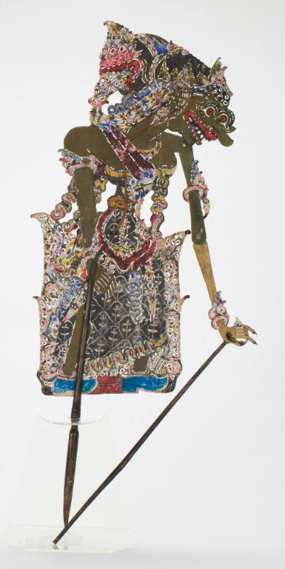 Gathotkatca, the son of Bima and the raksasa Hidimbi, is an important warrior in the Mahabharata. Not only does he have much of his father’s famous strength, but he can also fly, and is a valuable ally for the Pandawas during the Kurukshetra War between themselves and their cousins, the Korawas.Sukarno, Indonesia’s president from 1945-1967, often compared himself to Gathotkatca in speeches to the Indonesian public, characterizing himself as a powerful warrior. During his tenure in office, Sukarn resisted political pressure from more powerful Western countries, and associating himself with Gathotkatca highlighted his attempts to protect and defend the Indonesian nation.