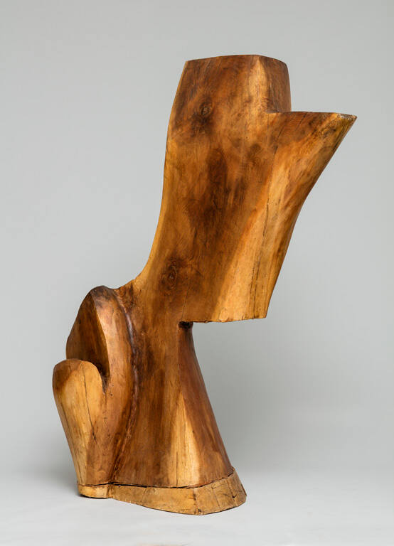 Born of Armenian descent in Constantinople, Raoul Hague came to the United States in the 1920s and studied at the Art Students League in New York. In 1956, his sculpture was included in the Museum of Modern Art’s famous Twelve Americans exhibition with the work of other abstract expressionist painters and sculptors. Hague’s method was to cut directly into the wood, without preliminary drawings or maquettes, using a chain saw supplemented by a variety of hand tools to work the surface. Often referencing the human figure?either in size, proportion, or gesture?Hague attempted to accentuate the strength and spirituality he saw in the tree trunks. (“Highlights from the Collection: 45 Years at the Johnson,” curated by Stephanie Wiles and presented at the Johnson Museum January 27–July 22, 2018)