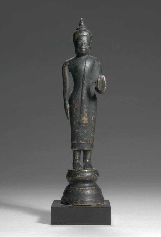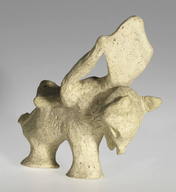 Two-sided carving: one side in the form of an elongated mask; the other side in the form of a standing figure