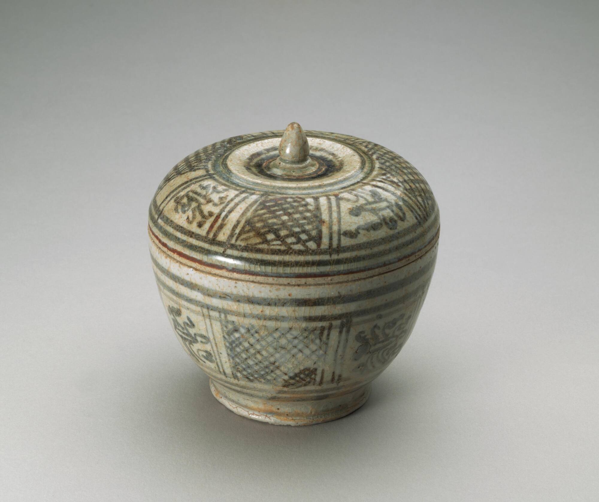 Stoneware with iron black underglaze painting, coated with transparent glaze